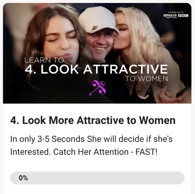 A private men’s dating and life skills community focused on learning how to meet, attract, and keep women through repeatable, real world skills.